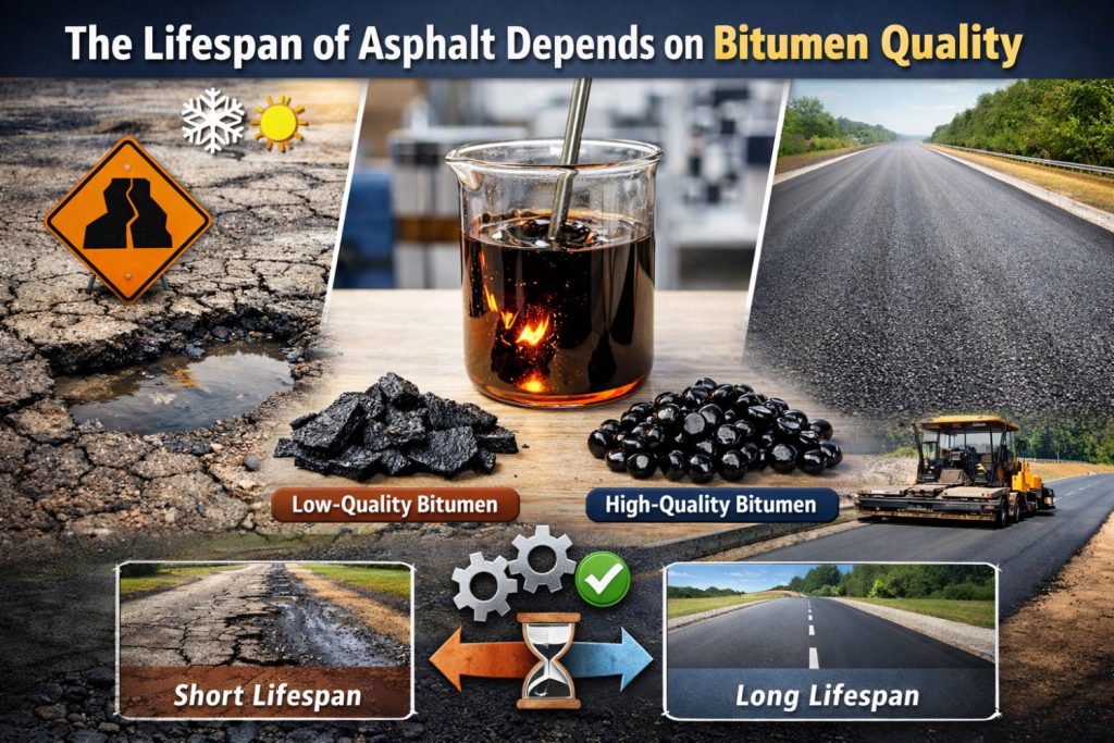 When people talk about the lifespan of asphalt roads, the first number that usually comes up is 10 to 20 years. But in reality, the durability of asphalt is not just about time — it is mainly about the quality of the bitumen used in the mix. Bitumen is the “glue” that holds the aggregates together, and its performance directly controls how long a pavement can survive traffic, weather, and aging.